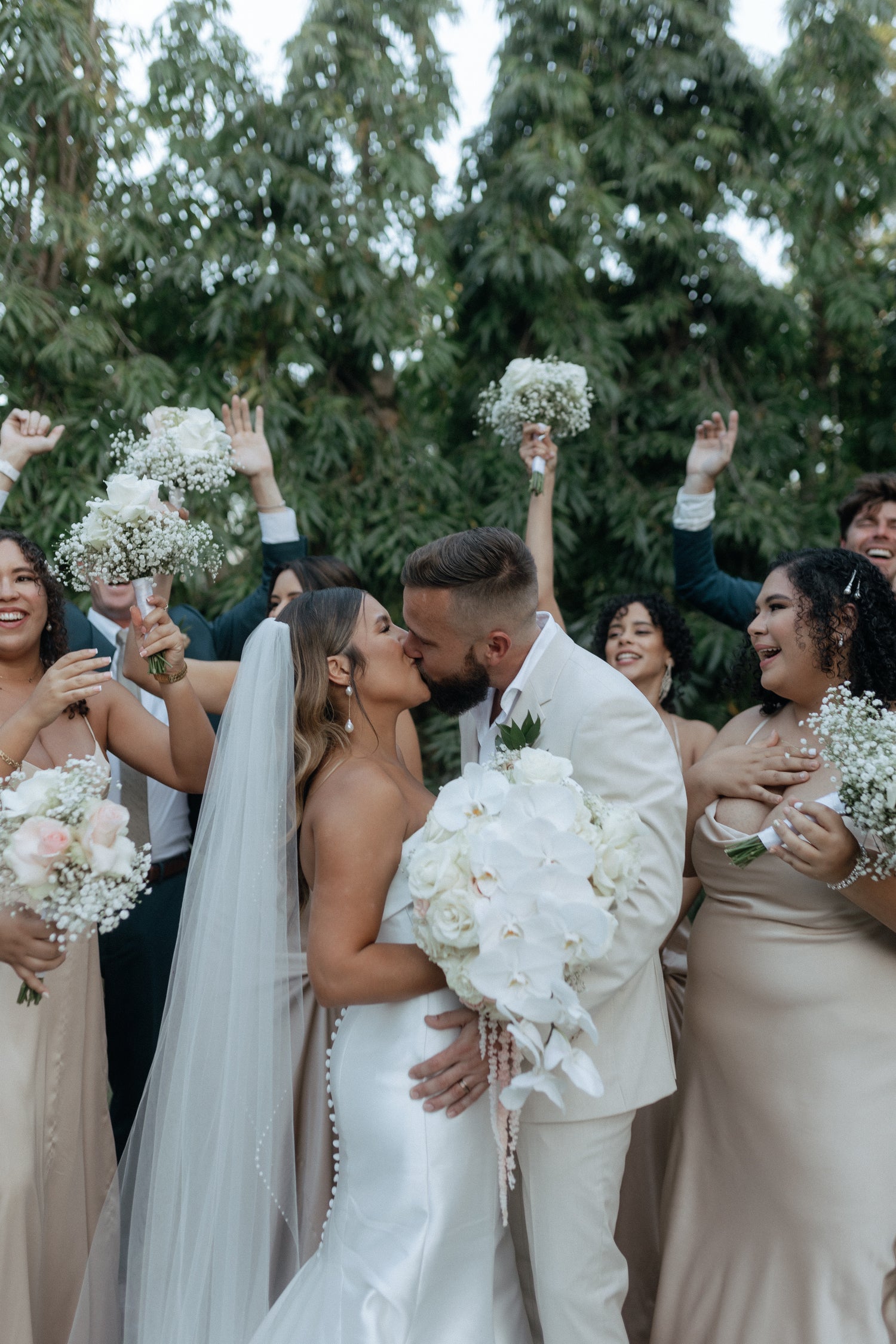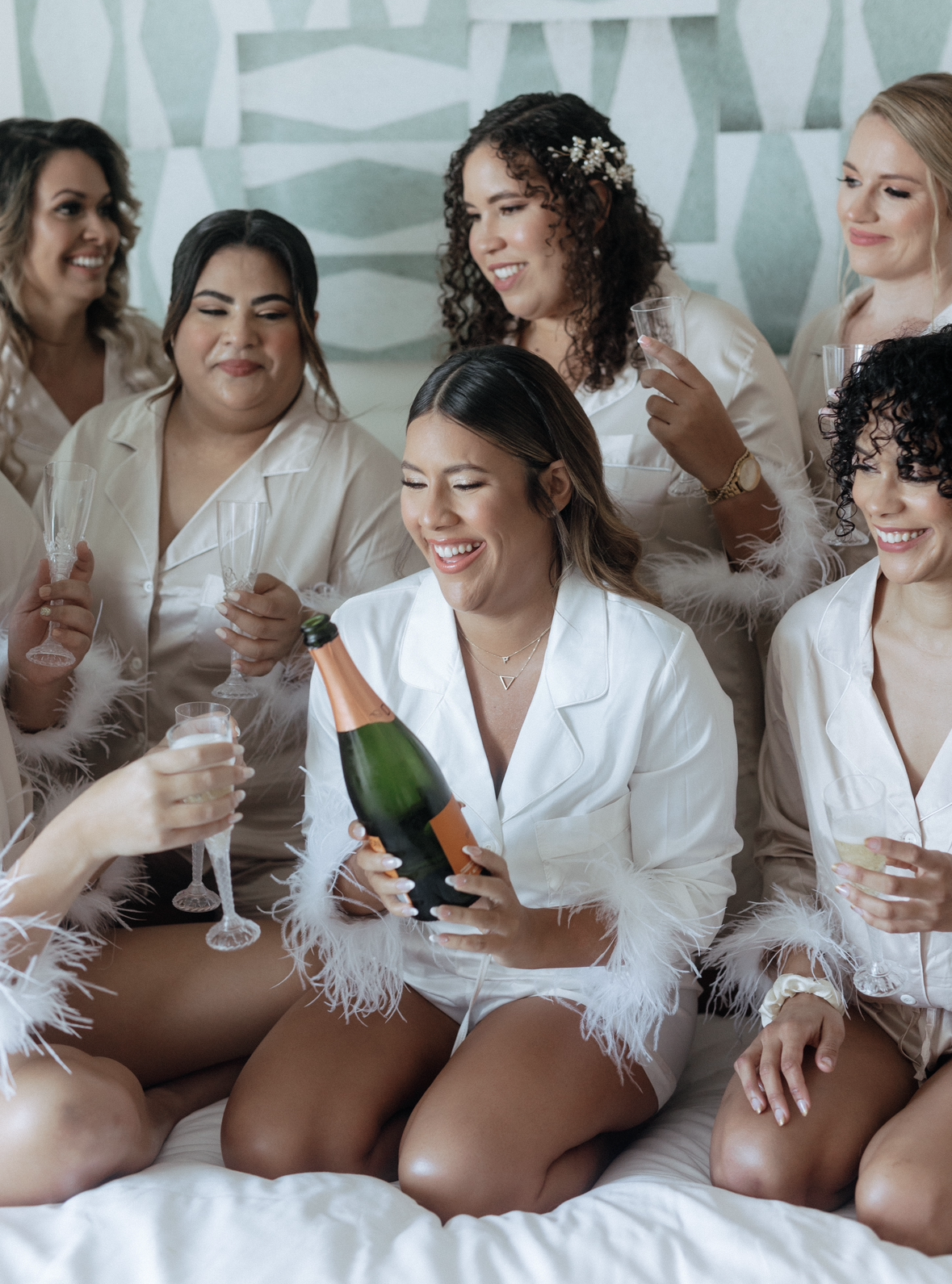 El servicio para tu séquito incluye preparación de la piel, maquillaje con productos de alta durabilidad y cuidadosamente seleccionados para cada tipo de piel, resistentes al agua, sudor y lágrimas, en adición a peinado con ondas, rizos o un semi-recogido. Además incluye una muestra del labial seleccionado para retocar. (De querer un peinado recogido, el precio del servicio podrá aumentar.)